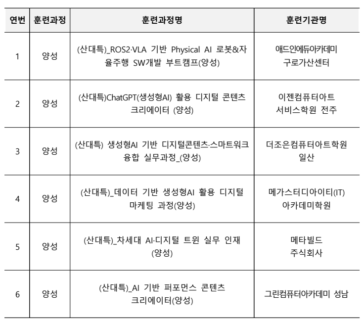 '25년도 산업구조변화대응 등 특화훈련 선정기관 및 과정 공모 결과를 공고합니다.